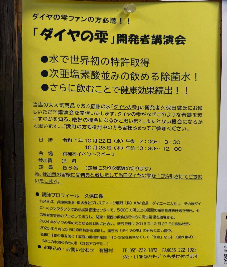 当店人気の「ダイヤの雫」の開発者 久保田先生の講演会を開催いたします。 ダイヤの雫ファンはじめ気になる方 のご参加をお待 …