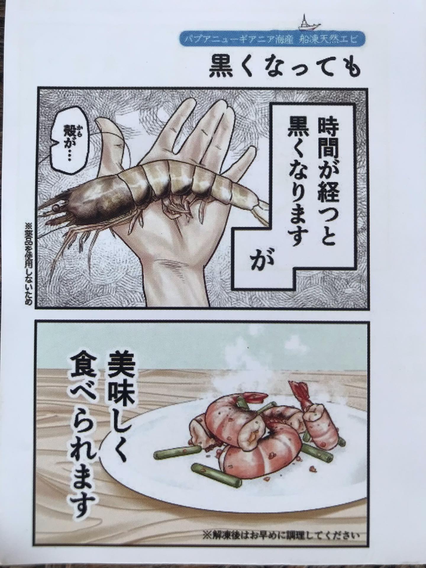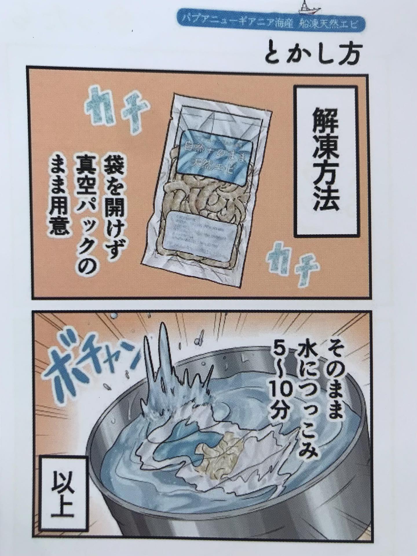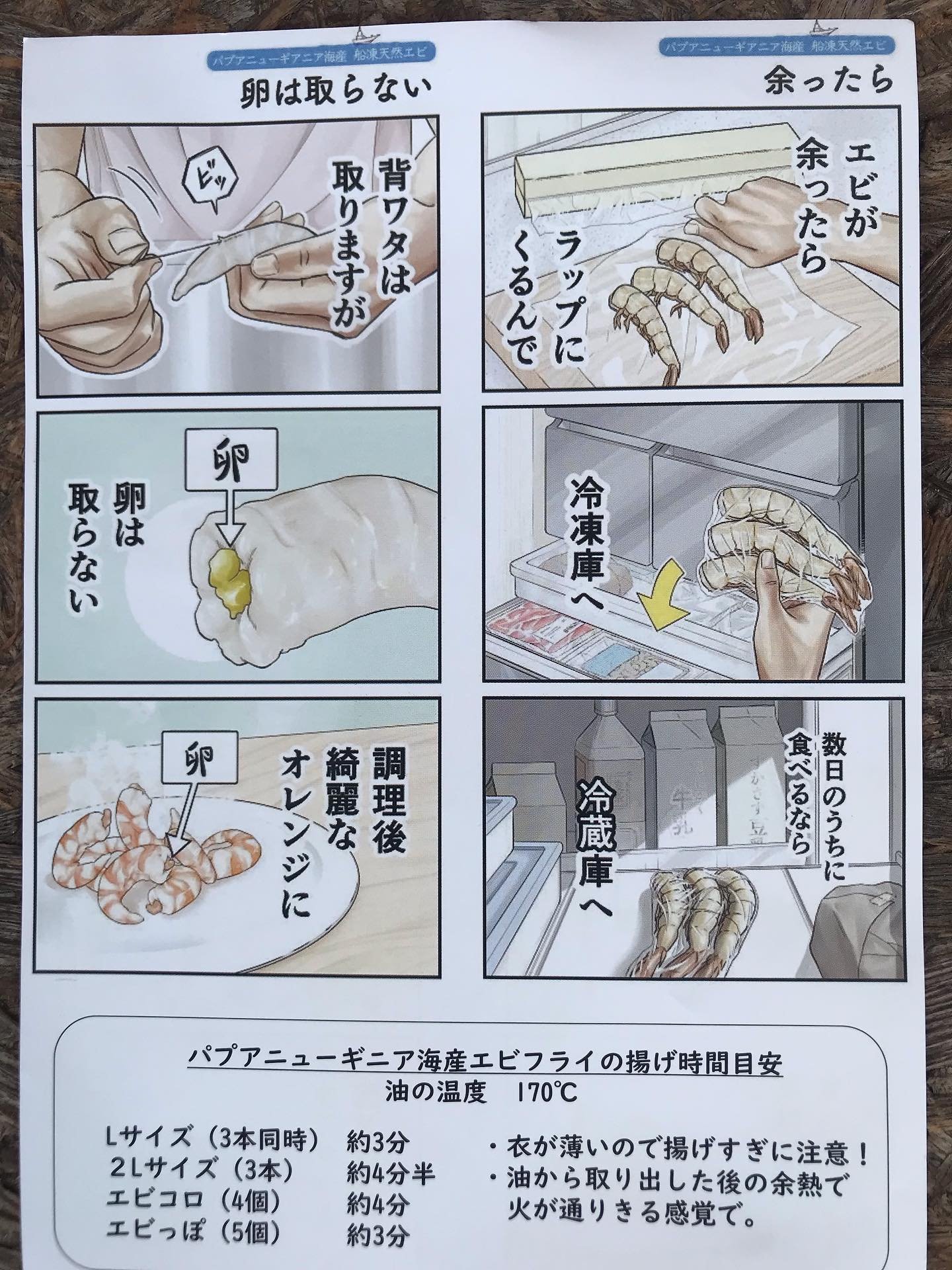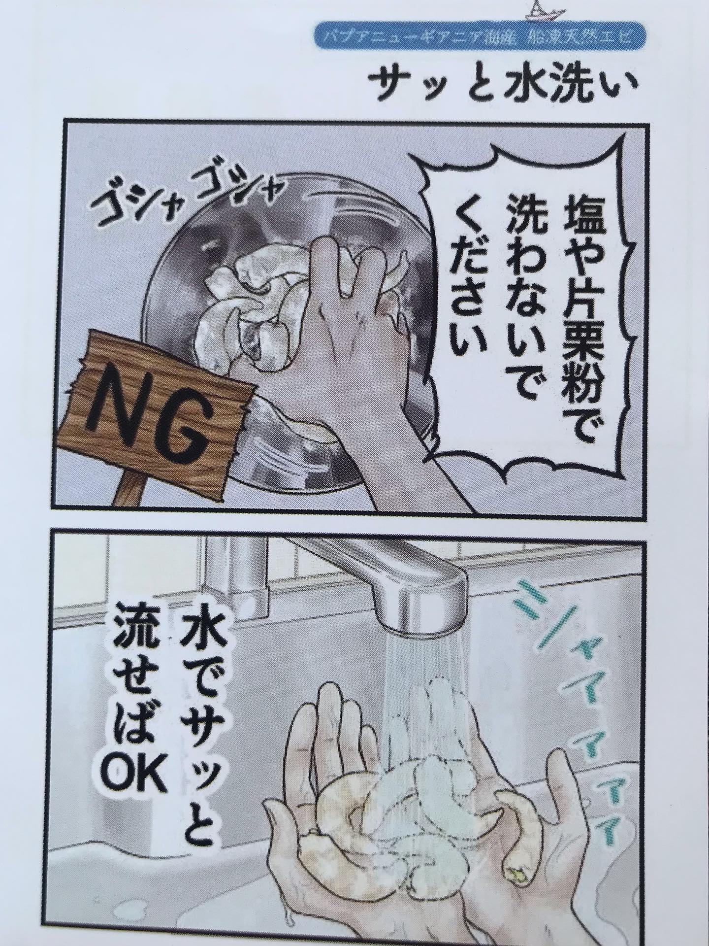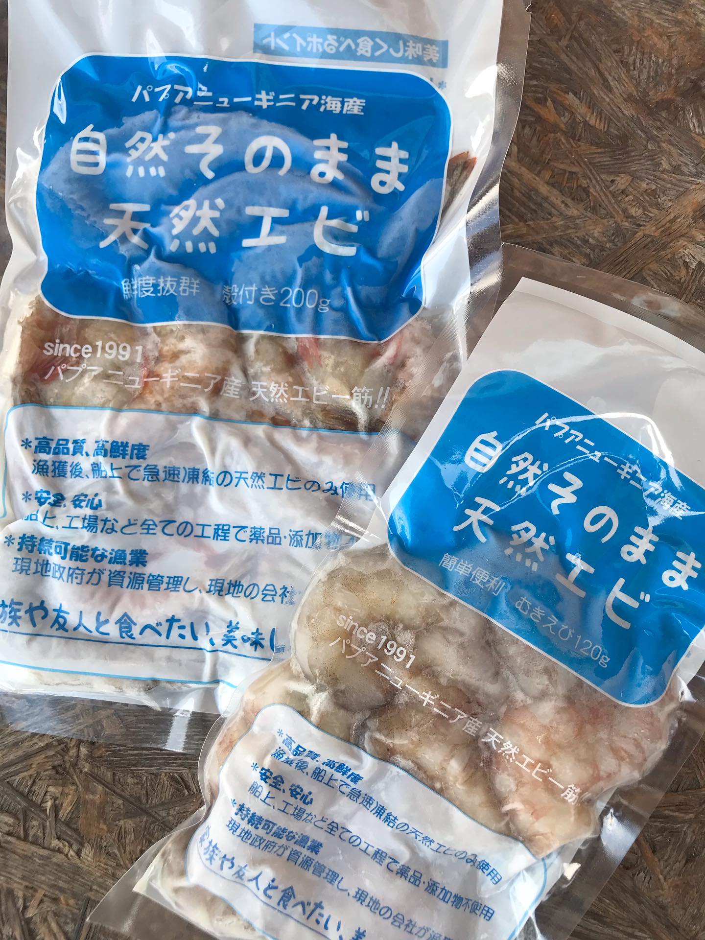 この天然エビはパプアニューギニアで漁獲後、鮮度重視で悪いものは手作業で一つずつ省き